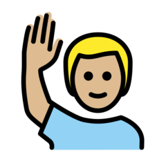 | Codepoint | U+1F64B 1F3FC 200D 2642 FE0F 1F64B - 🙋 Щастлив човек, вдигнал ръка |