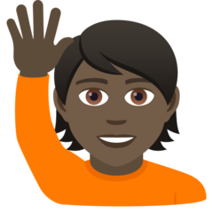 | Codepoint | U+1F64B 1F3FF 1F64B - 🙋 Щастлив човек, вдигнал ръка 1F3FF - 🏿 тъмна кожа |